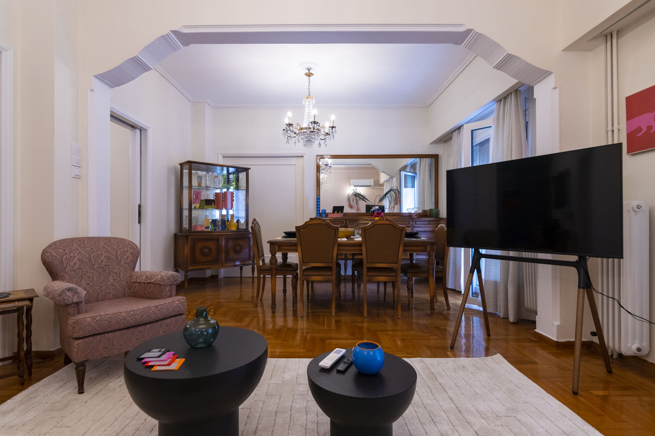 Centrally Located in the heart of Koukaki, spacious and comfortable, this lux 2 bedroom apartment is ideal for city adventurers, individuals seeking for a get away in the city, business travelers and larger groups. Just a few minutes walk from the nearest metro station and no more than 10 minutes from Acropolis ,a unique archaeological monument, in the vibrant Koukaki area, known for its charming streets, cozy cafes and active bar and restaurant scene. A perfect blend of the old and new Athens.